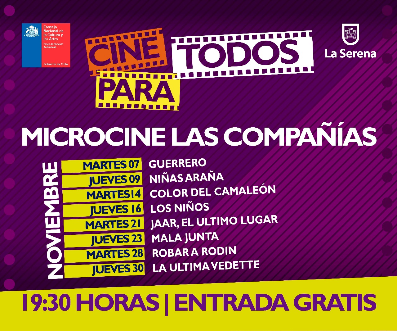 En el mes de octubre fueron parte de la cartelera las cintas Blanca Oscuridad, Como me da la Gana y el documental El Pacto de Adriana, mientras que en el mes de Noviembre se exhibirá Guerrero, Niñas Araña, Mala Junta, entre todas, todas de forma gratuita y para todo público. “El año pasado realizamos una propuesta para adultos mayores, con dos días a la semana con películas especialmente para ellos y esperamos pronto retomarlo”, explicó.